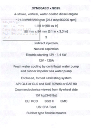 Yanmar Dizel Deniz Motoru 29 Hp Yelken Kuyruklu